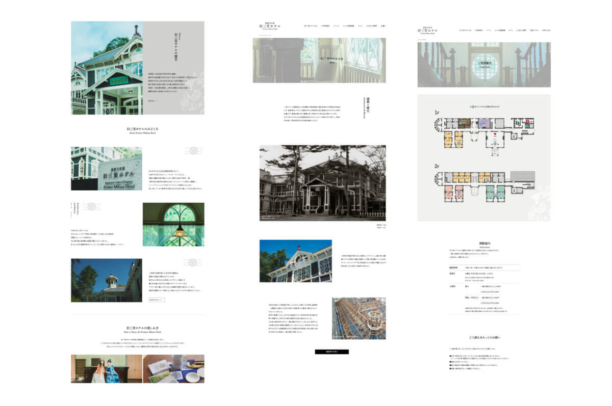 ウェブサイト制作の基本要件としては、クラシカルなデザインであること、WEBアクセシビリティについてはJIS規格に基づいたチェックを行うことが求められました。そのため配色、文字のサイズ、ボタンの操作性など注意深く配慮してデザインを進めました。読み物コンテンツとしては、「旧三笠ホテルについて」のストーリーページを作成。歴史的写真や保存修理工事の様子など、軽井沢町に協力していただきながら丁寧に作り込みました。